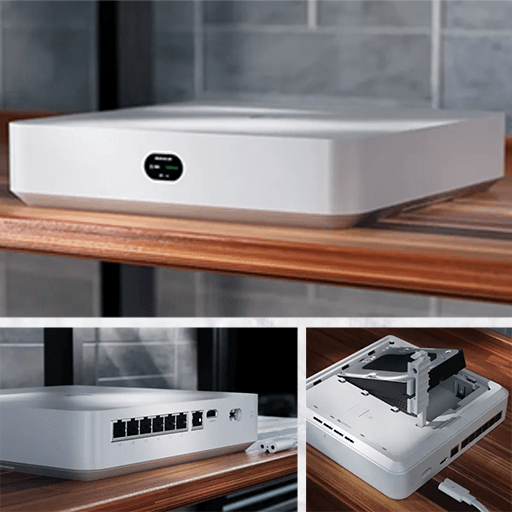 From $349 installed *Desktop 10G router with integrated WiFi 7, PoE, microSD storage, and full UniFi application support.